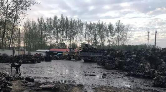 放眼望去,諾大的場(chǎng)地上,隨處堆放的報(bào)廢車零件,肆意傾倒的廢棄物油污,黑乎乎黏糊糊的令人觸目驚心,廠旁的一條小河里的河水也被染成了深黑色。