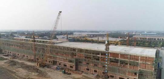 華邁紙業80萬噸高檔瓦楞原紙項目建設現場 華邁紙業80萬噸高檔瓦楞原紙項目一號紙機車間,安裝完成的紙機配套行車已經完成調試,正在進行一號車間封頂,車間內外處理和設備安裝也將同步啟動。與此同時,二號紙機車間基礎施工已經啟動。山東華邁紙業有限公司項目部部長楊德清說道:“我們項目目前的話PM1車間行車安裝調試完畢了,這個月底年基本封頂,PM2現在基礎開挖,紙漿車間二層已經完成,其他的附屬車間像成品庫、廢紙棚基本上完成90%了。”