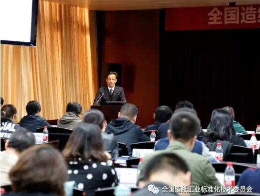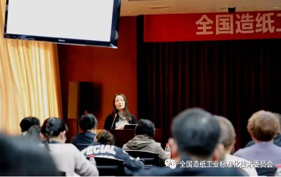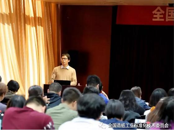 張清文副主任主持會議 隨后,標準起草人及相關專業技術人員對GB/T8939-2018《衛生巾(護墊)》、GB/T35613-2017《綠色產品評價紙和紙制品》和GB/T34448-2017《生活用紙及紙制品甲醛含量的測定》三項標準進行了解讀。