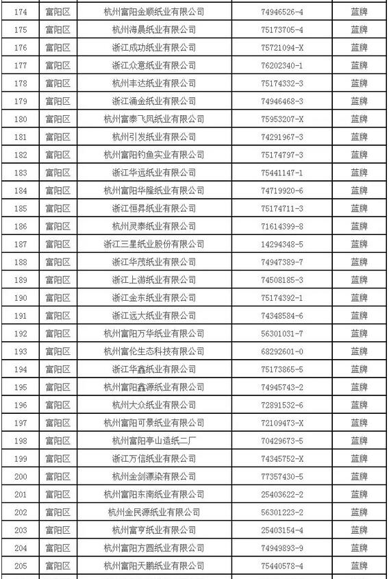 在公布的全部310家企業(yè)中,造紙行業(yè)企業(yè)占比例較高,引人關(guān)注的富陽區(qū)的造紙企業(yè)此次全部獲得藍牌(環(huán)保良好企業(yè))。僅有兩家造紙企業(yè)獲得黃牌(黃牌警示企業(yè)),全部位于桐廬縣,分別是桐廬華倫紙業(yè)有限公司和桐廬富春車圈紙業(yè)有限公司。
