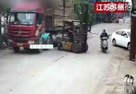今年六月份,江蘇張家港金港鎮一輛叉車在道路上違規作業時,未觀察后方就突然轉彎,結果將騎車人徐某撞倒,徐某身體多處損傷,且被“掃”翻16顆牙!