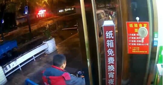 餐飲店安裝的監(jiān)控視頻上可以看到,這幾天有好多市民、顧客看到紙箱食堂的招牌以后,對(duì)這家店非常好奇,很多人停下腳步,仔細(xì)觀察,有的顧客還進(jìn)了餐飲店,視頻里出現(xiàn)了好多暖心的畫面。畫面里,一位快遞大哥來到店門口,把車上帶的幾個(gè)廢舊紙箱交給老板,換取了一份夜宵;一位推著紙箱車的老大爺走進(jìn)店里,拿紙箱向老板換取了一份夜宵,老大爺猶豫了一會(huì)兒準(zhǔn)備離開,被老板熱情拉住坐下,示意讓他坐在店里吃,并轉(zhuǎn)身給大爺遞上了一瓶礦泉水;天蒙蒙亮,即將開工的環(huán)衛(wèi)工人拿著一大疊折疊好的紙箱走進(jìn)店里換了早餐,并與老板熟悉地攀談起來。