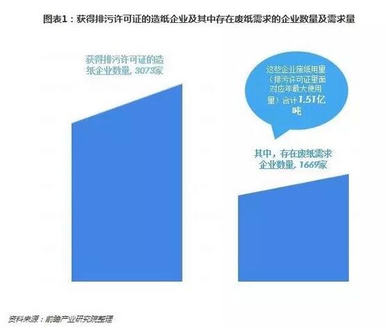 截至2018年10月22日,中國環境保護部固體廢物與化學品管理技術中心共計發布了二十二批廢紙進口名單,總核定量接近1800萬噸,共計77家造紙本企業獲得廢紙進口資格。而實際上存在廢紙需求的企業遠不止77家,廢紙進口政策向龍頭企業傾斜,國內大部分造紙企業的廢紙需求無法得到滿足。 據相關機構的統計,截至2018年2月5日,共有3073家造紙企業獲得排污許可證,存在廢紙需求企業有1669家,占比54%。