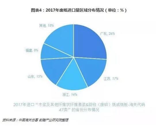 此外,中國海關總署的統計數據顯示,2017年廢紙進口量為2572萬噸。這2572萬噸的廢紙進口中造紙大省廣東的進口量占比就達到了26%,江蘇、浙江、山東和福建等沿海城市的廢紙進口量占比均較高,這四大省份的合計占比達到56%。進口廢紙政策收緊對于這五大廢紙需求大省的影響最為明顯。  根據相關機構統計,這1669家造紙企業的廢紙理論最大使用量為1.51億噸/年。而按照70%產能利用率測算我國的廢紙需求量在7500-8000萬噸之間。事實上,商務部的統計數據顯示,我國目前的廢紙回收量在5300萬噸左右,遠遠無法滿足國內造紙的需要。 廢紙缺口至少在3000萬噸以上提高廢紙回收率迫在眉睫 外廢進口被逐步禁止的同時,我國廢紙回收體系尚未完善,目前廢紙回收量率較低,廢紙需求缺口將不斷擴大。有監測數據顯示,我國廢紙利用率已經達到70%以上,2017年廢紙利用率為70.6%。但2017年我國廢紙回收率僅48.5%,遠遠低于發達國家70%的水平。 以往廢紙需求的缺口主要依靠廢紙進口來填補,而2010年以來我國廢紙的進口量均超過2500萬噸左右。這意味著隨著“禁廢令”和外廢進口零目標的持續推行,到2020年我廢紙需求缺口至少在2500萬噸以上。 加上國內產能利用率提高對我國廢紙的潛在需求,有機構預計2020年我國廢紙需求量缺口至少在3000萬噸以上。在廢紙進口這條渠道被截斷的情況下,3000萬噸的廢紙缺口只能通過提高國內的廢紙回收量來填補。因此,完善我國廢紙回收體系,提高廢紙回收率迫在眉睫。