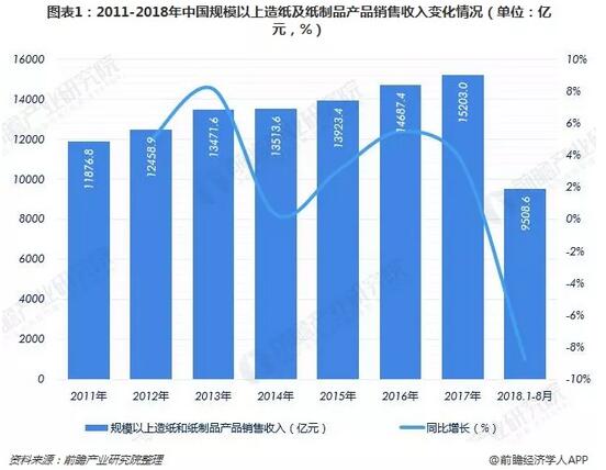 一、2018年1-8月造紙行業景氣度依然較高,造紙行業景氣度有望繼續向好。 近年來,受供給側改革、環保政策趨嚴等有利因素影響,造紙行業景氣度持續向好。雖然短期內,造紙行業產品產量整體有所下滑,但龍頭企業的競爭力在不斷增強,行業集中度有望得到進一步提升。 2018年10月19日,國家統計局的最新統計數據顯示,2018年1-8月,規模以上造紙及紙制品企業實現主營業務收入9508.6億元;利潤總額542.5億元。其中,全國造紙行業累計主營業務收入5723.6億元,累計同比增長11.4%;累計利潤總額343.9億元,累計同比增長7.1%,造紙行業景氣度仍較高。業內人士預測,2018年造紙行業供需略偏緊的態勢或將延續,造紙行業景氣度有望繼續向好。