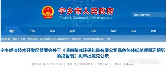 12月4日,湖南省寧鄉(xiāng)市環(huán)保局?jǐn)M審批《湖南榮成環(huán)保包裝有限公司綠色包裝紙箱項(xiàng)目環(huán)境影響報(bào)告表》。該項(xiàng)目總投資3.2億元,項(xiàng)目投產(chǎn)后,將形成年產(chǎn)1.8億平方米的紙箱生產(chǎn)能力。 除了榮成紙業(yè),近年來(lái)切入包裝市場(chǎng)的紙廠并不少。顯而易見(jiàn),產(chǎn)業(yè)鏈正在加速整合,紙廠不一定只造紙,包裝市場(chǎng)不只有包裝廠,一些靠低價(jià)維系生存局面的企業(yè)將要面臨更激烈的競(jìng)爭(zhēng)。