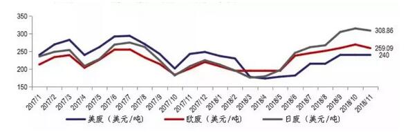 導語:受下游包裝市場需求減少的影響,今年包裝原紙的產銷量都在下滑,原材料也不再是搶手貨。再加之包裝紙需求異常疲軟,各大紙企紛紛采取了停機保價的策略。另外受貿易戰的影響,進口美廢已經開始加征25%的關稅,也影響了造紙廠進口美廢的積極性。就目前來看市場帶動性的薄弱,短期仍無回漲可能。 國廢斷崖式下跌,部分廠家價格比美廢便宜! 近日全國廢紙價格走勢,可以說綠如草原。全國范圍內,以各大龍頭紙企為首,全部呈現出跌跌不休的局面。 據生意社觀測,從9月份開始,國廢價格開始出現大幅度下調,目前的價格相比最高點已下跌近一半。11月1日最新一批廢紙進口許可名單的公布,令原本有些上漲勢頭的國廢價格再度掉頭向下。接著結束了本應是旺季節點的雙十一之后,廢紙的價格再次出現下滑并一直延續至月末。11月28日第25批次新增外廢的總核定量為0.4355萬噸,是今年除第14批外(許可量為0),單批次許可量最少的一次。截至目前,今年的總核定量已達到了1815.0651萬噸。 目前來看,部分地區廢紙均價已跌破1800元關口。國廢價格與外廢價差進一步縮小;考慮25%關稅因素,當前美廢價格已高于部分國廢成本。 進口廢紙國際月均價