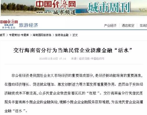 “與交行的合作對發展過程至關重要,從2013年合作開始,交行為我們提供了多種金融支持,為我們整合資源,快速發展鋪平了道路。2013年至今,我們的年營業額已經從1億元增長到5億元。”海南嘉昕紙箱包裝有限公司總經理莫智明說。 海南嘉昕紙箱包裝有限公司的成長歷史,是海南交行多年來致力服務本土民營企業的一個縮影。針對本土中小企業“短、小、頻、急”的資金需求特點,海南交行把提升民營企業和小微企業金融服務質效,加大信貸投入作為破解小微企業業務發展難題的突破口,多措并舉積極支持實體經濟發展,努力提高惠普金融覆蓋面,緩解本土中小企業融資難現狀。