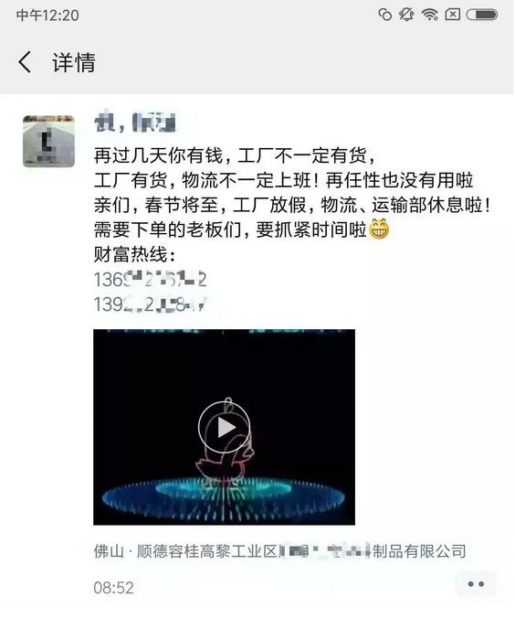 導語:年關將近,很多物流公司都陸續發布了2019年春節停運通知。大部分物流公司從1月20日起開始放假,部分甚至在1月10日、12日就停止收貨。有包裝廠也發出通知,春節將至,工廠放假,物流、運輸休息!要下單的老板們,抓緊啦!