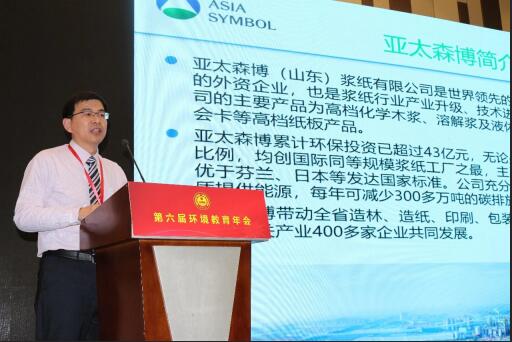 1月8日,由《環境教育》雜志社主辦的第六屆環境教育年會在天津召開。亞太森博(山東)漿紙有限公司被評為“支持環境教育事業先進單位”,公司代表參會領獎并作為與會企業代表分享了企業開展環境教育的經驗和社會責任舉措。