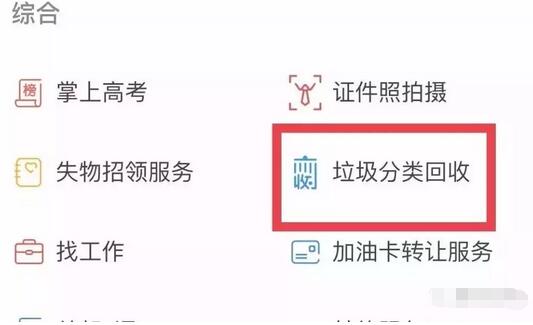 記者體驗了一下支付寶客戶端新上線的回收功能,打開“支付寶-城市服務”,在綜合類目里找到“垃圾分類回收”(見下圖):