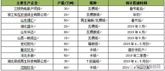 分析節(jié)后利空、利好因素,預(yù)計(jì)漲幅在50-100元/噸 至于春節(jié)后的市場(chǎng)行情,目前業(yè)內(nèi)存在兩種看法,一是認(rèn)為由于紙箱替代物增多、商務(wù)法對(duì)包裝物材料的要求以及大量新增產(chǎn)能投放,包裝紙市場(chǎng)難以樂觀: 1、塑料袋、中空箱、泡沫箱、循環(huán)紙箱等多種替代方案分?jǐn)偭思埾浒b的需求,對(duì)包裝紙市場(chǎng)形成利空; 2、1月1日實(shí)施的《中華人民共和國(guó)電子商務(wù)法》,將進(jìn)一步促進(jìn)包裝材料的運(yùn)用,且紙箱的利用率同步提高; 3、春節(jié)后新增產(chǎn)能較多,將在供應(yīng)端對(duì)包裝紙市場(chǎng)形成利空因素。根據(jù)百川資訊的統(tǒng)計(jì),2019年上半年投產(chǎn)的產(chǎn)能近500萬(wàn)噸:
