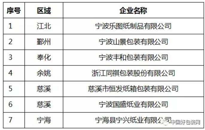 近日,寧波市經(jīng)濟和信息化局公示了寧波市節(jié)水型企業(yè)(第六批),其中,有7家包裝企業(yè)上榜。
