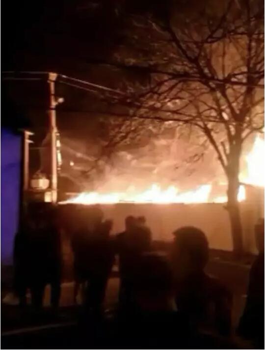 火災事發地一帶位于王家莊和夏建村中間 失火面積約1000多平方,剛好下班時間無人員傷亡。當天21點20分左右,火災得到了控制。火災原因正在調查中。 火災現場火光沖天: