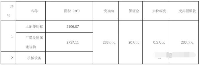 拍賣時間:2019年3月8日10時至2019年5月7日10止 評估價:352.91萬元 變賣價:283萬元 增加幅度:0.5萬元 聯(lián)系方式:方法官17755913591 拍賣標(biāo)的 黃山市四方彩印包裝有限公司所有的坐落在安徽省休寧縣東臨溪鎮(zhèn)上村的房地產(chǎn)(包括附屬建筑)、機械設(shè)備。 土地使用權(quán)證號:休國用(2009)第0588號;產(chǎn)權(quán)證號為:房地權(quán)證休字第30114764號,房地權(quán)證休字第31112986號,房地權(quán)證休字第30111577號。