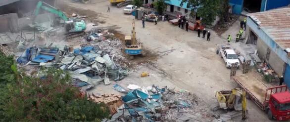 僅僅一天時間,鼎湖從事廢品回收加工利用的15家“散亂污”企業廠房,共計1.5萬多平方米,被夷為平地!
