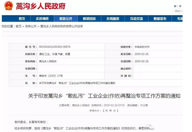 你以為環保高壓只涉及大城市? 其實,環保風暴已深入農村! 各村莊要進一步配合“散亂污”工業企業(作坊)再整治領導組織和專項整治工作人員。 2月26日,安徽省宿州市埇橋區蒿溝鄉發布了《關于印發蒿溝鄉“散亂污”工業企業(作坊)再整治專項工作方案的通知》。 對有問題的工業企業(作坊)及時下達停產整治通知,限期內整治不達標的予以關停。要加強司法聯動、“兩法”有效銜接,對涉嫌違法違規構成犯罪的,要第一時間移送鄉派出所或與鄉派出所聯動執法,加大打擊力度。