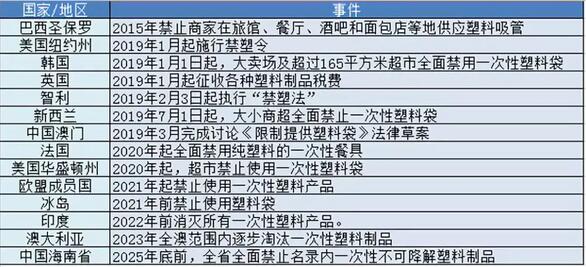 (全球發(fā)布禁塑令國家/地區(qū)達15個) 中國海南省 2020年起執(zhí)行 2月21日,《海南省全面禁止生產(chǎn)、銷售和使用一次性不可降解塑料制品實施方案》新聞發(fā)布會在海口召開,記者了解到,2019年底前,建立健全全省禁止生產(chǎn)、銷售和使用一次性不可降解塑料制品的地方性法規(guī)及標準體系,完善監(jiān)管和執(zhí)法體系,形成替代產(chǎn)品供給能力; 2020年底前,全省全面禁止生產(chǎn)、銷售和使用一次性不可降解塑料袋、塑料餐具; 2025年底前,全省全面禁止生產(chǎn)、銷售和使用列入《海南省禁止生產(chǎn)銷售使用一次性不可降解塑料制品名錄(試行)》的塑料制品。 新西蘭 2019年7月1日起執(zhí)行 從今年7月1日起,無論商超大小,包括服裝店、dairy店等零售業(yè),將全面禁止一次性塑料購物袋; 環(huán)保部已經(jīng)發(fā)文件確認,對于違規(guī)情節(jié)嚴重、勸說無效者,最高罰款是10萬紐幣! 韓國 2019年1月1日起執(zhí)行 韓國環(huán)境部在官方網(wǎng)站發(fā)布聲明說,根據(jù)“關(guān)于節(jié)約資源及促進資源回收利用法律修正案”,自2019年1月1日起,韓國2000多家大賣場以及1.1萬家店鋪面積超過165平方米的超市,將全面禁用一次性塑料袋。 除魚類和肉類等必須用塑料袋之外,相關(guān)大賣場和超市只能為顧客提供環(huán)保購物袋、紙質(zhì)購物袋、可回收容器等盛放物品。如果被發(fā)現(xiàn)使用一次性塑料袋,商家將被處以最高300萬韓元(約合2700美元)罰款。 美國紐約州 2019年1月起執(zhí)行 中國僑網(wǎng)1月15日電據(jù)美國《僑報》報道,紐約州長葛謨計劃在全州推行塑料袋禁令,為推行環(huán)保政策,葛謨將把塑料袋禁令納入2019年行政預(yù)算,他指出,“禁用塑料袋和促進回收的大膽行動將減少我們社區(qū)的垃圾,保護我們的水源,為所有人創(chuàng)造一個更清潔、更綠色的紐約”。 近日,Hoboken已開始施行禁塑令,shoprite等超市塑料袋售10美分一個。 智利 2019年2月3日起執(zhí)行 2018年8月3日,智利正式頒布“禁塑法”,禁止全國所有超市、商鋪向顧客提供塑料袋。智利由此成為拉美首個全面禁止商家向購物者提供塑料袋的國家。 “禁塑法”規(guī)定,從2019年2月3日起,所有大型超市、商場不得再向購物者提供免費或收費塑料袋,對每個違法提供的塑料袋,最高罰款370美元;2020年8月3日起,智利將全面“禁塑”。 法國 2020年起執(zhí)行 7月12日,法國《歐洲時報》報道稱,巴黎市議會近日投票通過的一項決議規(guī)定:從9月開始,各大市政公共機構(gòu)比如學(xué)校、養(yǎng)老院、體育場和博物館等,將逐漸禁止使用塑料吸管。 法國2016年起就禁用了厚度低于50微米的一次性塑料袋。此外,法國政府將于2020年開始全面禁用純塑料的一次性餐具,取而代之的將是可降解袋和可堆肥袋。 歐盟成員國 2021年起執(zhí)行 科技日報柏林2018年10月24日電(記者顧鋼)歐盟議會24日投票,批準從2021年起禁止使用一次性塑料產(chǎn)品,以遏制日益嚴重的塑料廢棄物對海洋和生態(tài)環(huán)境的污染。 根據(jù)提案規(guī)定,從2021年起,歐盟將禁止生產(chǎn)和銷售一次性餐具、棉簽、吸管等一次性塑料制品,這些用品將由紙、秸稈或可重復(fù)使用的硬塑料替代。 塑料瓶將根據(jù)現(xiàn)有的回收模式單獨收集,到2025年,要求成員國的一次性塑料瓶回收率達到90%。 澳大利亞 2018年7月1日起執(zhí)行 從2018年7月1日起,澳大利亞昆士蘭州和西澳大利亞州禁止零售商向顧客提供一次性超薄塑料袋。自此,澳大利亞八個行政區(qū)僅剩新南威爾士州還沒有實行禁塑令。 根據(jù)昆士蘭州的規(guī)定,零售商如違規(guī)提供厚度不超過35微米的一次性超薄塑料袋,可能將會面臨最多6300澳元(折合人民幣3萬元)的巨額罰款。 澳大利亞最大的連鎖超市企業(yè)伍爾沃思,從2018年6月20日起,在全國1000家門店停止向顧客提供一次性塑料袋,顧客購物時需自備購物袋或者購買可循環(huán)使用的環(huán)保塑料袋。 澳洲政府表示,到2023年在全澳范圍內(nèi)逐步淘汰所有的一次性塑料制品,比如塑料袋、外賣盒、咖啡杯、薯條包裝袋等 并且呼吁澳洲本地的各大企業(yè)組織一起推動這項禁令 印度 2022年起執(zhí)行 6月5日,世界環(huán)境日當天,印度總理宣布,計劃2022年前消滅所有一次性塑料產(chǎn)品。 印度第二人口大邦馬哈拉施特拉邦的“限塑令”在6月23日正式生效。 美國有線電視新聞網(wǎng)(CNN)稱,限塑令生效后,監(jiān)察員開始頻繁出現(xiàn)在城市街頭,毫不留情地給違規(guī)商家開罰單。6月24日,僅該邦首府孟買一地就有80多個商家被罰,罰金高達40萬盧比。 英國 2019年1月起執(zhí)行 今年1月,英國首相特蕾莎·梅宣布將不遺余力地全面禁塑,除了征收各種塑料制品稅費、加大對可替換材料的研發(fā),還計劃在2042年前消除所有可避免的塑料垃圾,包括塑料袋、飲料瓶、吸管和大部分食品包裝袋。 除了政府,英國女王也表明了自己強烈的禁塑決心,她要在所有皇室的地盤上全面禁止使用塑料吸管和塑料瓶。 澳門特區(qū) 銷售數(shù)量超量完成 澳門特區(qū)行政會14日公布,已完成討論《限制提供塑料袋》法律草案,建議對零售行為中提供塑料袋實行“膠袋收費”的管制措施,由商戶收取每個膠袋1澳門元的費用。 法案建議在零售行為中,必須以有償方式向他人提