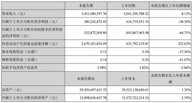 導(dǎo)語(yǔ):太陽(yáng)紙業(yè)(002078.SZ)披露2019年第一季度報(bào)告,公司實(shí)現(xiàn)營(yíng)業(yè)收入54.51億元,同比增長(zhǎng)8.13%;歸屬于上市公司股東的凈利潤(rùn)3.80億元,同比下降38.34%;經(jīng)營(yíng)活動(dòng)現(xiàn)金凈流入26.70億元,同比增長(zhǎng)322.63%;基本每股收益0.15元。