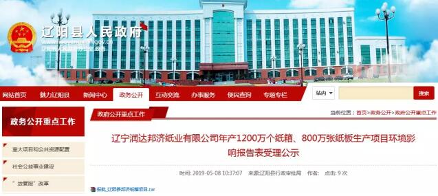 安徽省宿州市蕭縣昌宇紙制品加工廠總投資1000萬元,項目位于蕭縣經(jīng)濟技術(shù)開發(fā)區(qū)S301省道東北側(cè),新增倉庫 1440 平方米、熬膠室 170 平方米;購置熬膠機、烘干機、污水處理設(shè)備等設(shè)備;購置新的印刷機淘汰部分原有印刷機;原有1臺燃煤鍋爐技改為燃生物質(zhì)顆粒鍋爐;并配套建設(shè)變配電、綠化、給排水、消防等設(shè)施。 該項目正式運營后可達到年產(chǎn)2500萬平方米包裝紙箱的生產(chǎn)規(guī)模,不新增產(chǎn)能。該項目已經(jīng)取得蕭縣經(jīng)濟和信息化委員會文件《關(guān)于蕭縣昌宇紙制品加工廠年產(chǎn)2500萬平方米包裝紙箱技術(shù)改造項目備案的函》(蕭經(jīng)信審批【2019】2號)。 2、遼寧潤達邦濟紙業(yè)有限公司新增瓦楞紙板生產(chǎn)線等項目,總投資2000萬元