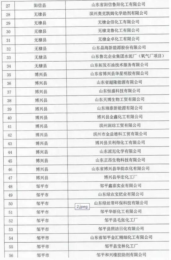 濱州擬“關閉淘汰一批”(第一批)化工生產企業名單