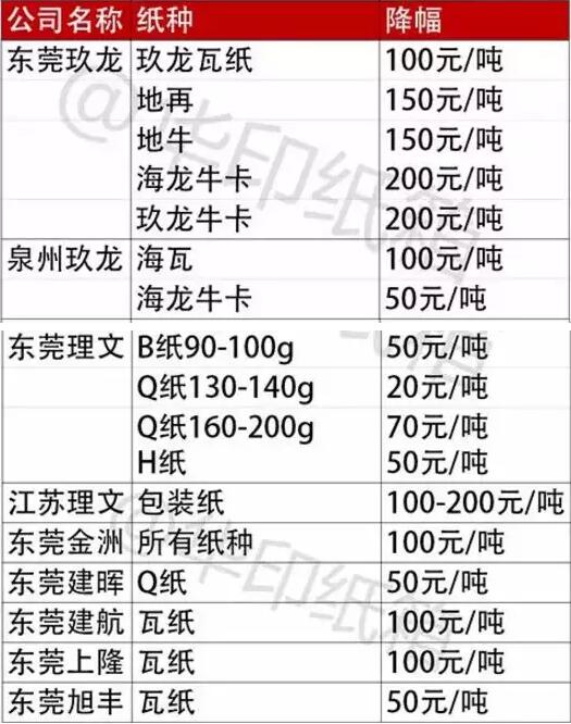 受需求銳減、庫存偏高等因素影響,今年開春以來來包裝紙價(jià)格持續(xù)低迷,瓦楞紙價(jià)格數(shù)據(jù)的“缺席”讓許多紙箱廠無所適從。向前走比向后看更重要,隨著造紙端的行業(yè)整并蔓延和需求端的內(nèi)卷化加劇,下游包裝行業(yè)被壓價(jià)也不可避免。紙箱廠也將迎來低利潤(rùn)新階段。 中國(guó)對(duì)美600億商品加征關(guān)稅,紙類商品超150項(xiàng) 對(duì)于美方發(fā)起的貿(mào)易戰(zhàn),中國(guó)早就表明態(tài)度:不愿打,但也不怕打,必要時(shí)不得不打。面對(duì)美國(guó)的軟硬兩手,中國(guó)也早已給出答案:談,大門敞開;打,奉陪到底。 5月14日,財(cái)政部消息,自2019年6月1日0時(shí)起,中國(guó)將對(duì)原產(chǎn)于美國(guó)的部分進(jìn)口商品提高加征關(guān)稅稅率5%-25%不等。此次與造紙市場(chǎng)相關(guān)的品類涉及150多項(xiàng),其中對(duì)原產(chǎn)于美國(guó)的廢紙漿將加征20%的關(guān)稅,對(duì)木漿暫維持5%不變,未來會(huì)不會(huì)繼續(xù)增加木漿關(guān)稅現(xiàn)在尚不能確定。但從目前的情況來看,造紙廠反其道而行之的降價(jià)行為,已經(jīng)側(cè)面反饋了市場(chǎng)對(duì)貿(mào)易戰(zhàn)的反應(yīng)。 2018年中國(guó)包裝行業(yè)年度運(yùn)行報(bào)告發(fā)布 中國(guó)包裝聯(lián)合會(huì)發(fā)布了2018年中國(guó)包裝行業(yè)年度運(yùn)行報(bào)告。2018年1-12月,全國(guó)箱板紙累計(jì)完成產(chǎn)量1147.60萬噸,同比增長(zhǎng)6.70%;全國(guó)瓦楞紙箱行業(yè)累計(jì)完成產(chǎn)量2733.46萬噸,同比增長(zhǎng)-3.99%;全國(guó)包裝行業(yè)累計(jì)完成主營(yíng)業(yè)務(wù)收入9703.23億元,同比增長(zhǎng)6.53%;完成利潤(rùn)總額515.65億元,同比增長(zhǎng)1.92%。 在造紙端的行業(yè)整并蔓延和需求端的內(nèi)卷化加劇,下游包裝行業(yè)被壓價(jià)的低利潤(rùn)新階段,2019年能否延續(xù)增勢(shì)達(dá)到萬億,值得想象。 玖龍、理文紙價(jià)下調(diào)50-200元/噸 5月16日,玖龍二大基地、理文兩大基地一致發(fā)出降價(jià)通知,包裝紙最高降幅高達(dá)200元/噸。東莞多家規(guī)模紙廠在已有跌價(jià)基礎(chǔ)上繼續(xù)跟跌,幅度亦在50-100元/噸。截止目前,降價(jià)主要集中在華南、華東地區(qū),其它地區(qū)觀望為主。