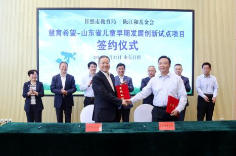 2019年5月22日,《慧育希望—山東省兒童早期發展創新試點項目合作備忘錄》簽字儀式在山東省日照市舉行。北京陳江和公益基金會將捐資1000萬人民幣,用于探索農村貧困地區兒童早期發展干預的可行模式。