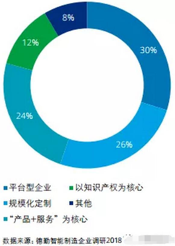 ▲ 受訪生產型企業工業云部署 未來企業很大部分增值將來自跨企業活動,從長遠看,公有云、混合云是大趨勢,因為只有這樣才能實現數據交換和資源共享。私有云雖然安全,但很可能被孤立在新的商業模式和新的生態圈之外。 —— 賀東東 樹根互聯CEO 德勤認為物聯網在智能制造領域的應用場景主要分為三類:設備與資產管理、產品洞察和服務創新。 管理設備與資產 具備感測與聯網功能的系統與大數據結合,可以實現設備的監控和管理,如遠程監控、預測性維護和互聯現場等。遠程監控以物聯網替代傳統的人工巡檢機制,通過傳感器遠距離將設備數據傳輸到運營中心。預測性維護打破傳統工廠 按計劃進行定期維護設備的運營方式, 通過物聯網對設備整個生命周期進行全程監控,并預測設備未來可能發生的故障,提前制定預防性維護計劃,減少故障率并提高生產效率。 物聯網還可以連接和監控廠房的工業裝置和設備,獲得有見解的分析,從而幫助跨工業設備、 生產線以及在整個工廠范圍內優化性能和效率。當然,除了新廠房,老廠房和設備在沒有更新換代之前,也有聯網監控的需要,如何在現有設備上進行物聯網改造是值得企業關注的問題。 洞察產品 制造企業往往不太了解自己的產品如何被使用,而物聯網將改變這一現狀。在產品投入使用后,制造廠商可以通過物 聯網與產品建立并保持聯系,收集動態數據,以更加系統的方式實時地持續地 分析產品使用情況。在了解客戶對產品的使用方式后,廠商還可以基于數據預測客戶需求,開發個性化產品和新的服務項目,提高產品附加值。 服務創新 基于數據和平臺提供后市場服務,物聯網 與服務交融實現商業模式創新。物聯網協助制造企業更有效捕捉和預測市場需求,創造動態化、個性化的智能服務、咨詢服務、數據服務、物聯網金融與保險 等新的服務種類。這類應用將打破企業原來的邊界,從全社會的維度思考制造資源的優化,客戶和制造端的互動以及各種商業模式的創新。 企業需要評估自身業務需要,明確商業目標、相關流程和預期結果的范圍,在考慮技術可擴展性、性能、帶寬經濟和技術創新等級后,才能對數據和物聯網系統的處理架構做出明智的選擇。 商業模式重構 智能制造不僅能夠幫助制造型企業實現降本增效,也賦予企業重新思考價值定位和重構商業模式的契機。同時,新進入者也在不斷挑戰傳統市場參與者的地位,眾多技術型企業加入戰場推動工業企業探索商業模式上的創新。 德勤調研發現企業對未來商業模式的規劃大致呈四類:30%的受訪企業未來商業模式將以平臺為核心,26%的企業走規模化定制模式,24%以“產品+服務”為核心向解決方案商轉型,12%以知識產權為核心(見下圖)。平臺型商業模式定位以提供多種軟件服務和搭建生態系統為核心,未來可能不會出現類似BAT這樣的行業巨頭,但不乏垂直行業領軍企業或平臺。 規模化定制模式,如C2M已經不局限于服裝制造,而延伸到汽車和裝備制造等行業。“產品+服務”為核心旨在圍繞客戶需求提供解決方案,是目前很多企業在做的。以知識產權為核心的企業往往通過專利戰略,形成技術壁壘占領市場。