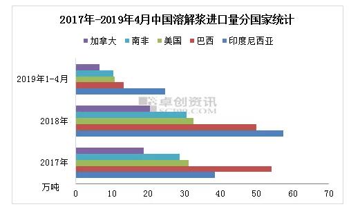 從上圖可以看出,2018年印度尼西亞超過巴西成為中國最大的溶解漿進口國,原產于印尼的溶解漿進口量57.42萬噸,較2017年上升18.85萬噸,進口占比20.23%,較2017年增加5.41個百分點。2019年1-4月的海關數據顯示印度尼西亞仍是最大的進口來源國。卓創分析主要原因:一是印尼APRIL集團旗下賽得利粘膠短纖工廠的產能從2017年的49萬噸產能提升到2019年的99萬噸產能,集團內部需求增加,APRIL集團增加發往中國的溶解漿數量。二是印度尼西亞較美國、加拿大、巴西三國地理位置優勢明顯,該國進口溶解漿具有船期短,成本低,風險小的特點,特別是2018年下半年至2019年上半年,國內粘膠短纖市場偏弱整理,粘短廠家原料備貨受避險心態影響,增加對印尼溶解漿的采買量。 國內新增產能待釋放 2017年和2018年國內溶解漿產能變化不大,穩定在100-110萬噸,而2018年黃岡晨鳴新增30萬噸生產線和亞太森博120噸生產線改造升級后,都具有排產溶解漿的能力。雖然受2019年上半年溶解漿市場行情欠佳影響,這種靈活生產情況尚不明顯。一旦溶解漿市場行情好轉,或造紙市場行情低迷,兩家漿廠生產線隨時有轉產溶解漿的能力,相較于取消關稅三國的進口溶解漿,國產溶解漿具有運輸方便和供應及時的特點,勢必減少對三國溶解漿的需求量,減弱取消反傾銷稅的影響。 綜合來看,下游粘短新增產能需求份額被印度尼西亞進口溶解漿和國內溶解漿新增產能消化,而且對原產于美國的溶解漿仍有5%的加征關稅,進口成本無優勢,后期進口量或下降。 后期展望 6月初粘膠短纖價格降至2011年以來低位,廠家成本壓力大,需求低迷,加之中美貿易摩擦影響,業者心態謹慎,原料備貨積極性不高。供應方面,亞太森博6月中旬造紙漿線轉產溶解漿,預計7-10天,國內漿市供應量穩定。卓創分析,溶解漿市場供需矛盾暫難緩解,短期漿市難有放量,預計6月中下旬溶解漿價格承壓下行。