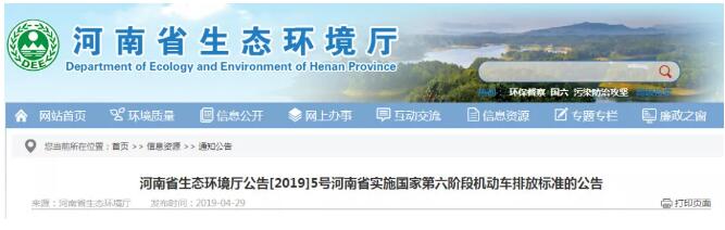 4月29日,河南省生態(tài)環(huán)境廳發(fā)布了《河南省實施國家第六階段機動車排放標準的公告》,確定將于2019年7月1日起執(zhí)行國六排放標準。 2019年7月1日起,國五排放的車將不再允許在河南銷售,違規(guī)者將依法受到嚴格處罰。