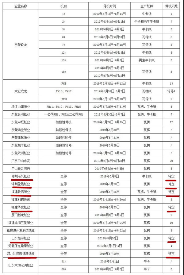 導(dǎo)語:6月,中小瓦楞紙企于下旬將紙價下調(diào)50-100元/噸。紙企停機穩(wěn)價未達預(yù)期。當(dāng)前已有部分紙企按原計劃恢復(fù)生產(chǎn),個別紙企5月開始所有機臺全部停機,至今開工時間仍待定。供應(yīng)承壓顯著、下游難覓利好,市場運行態(tài)勢或更加疲弱。 瓦楞紙價同比下滑30.94% 紙企停機穩(wěn)價未達預(yù)期 6月份瓦楞及箱板紙市場呈現(xiàn)弱勢下行走勢。 其中,華北、華南地區(qū)停機檢修,中小瓦楞紙企在嘗試多次拉漲無果之后因下游需求萎靡態(tài)勢不減,于下旬將出廠價格進行下調(diào)50-100元/噸。 據(jù)統(tǒng)計,截止到6月26日,全國瓦楞紙均價3320元/噸,環(huán)比上月底下滑1.86%,同比下滑30.94%;全國箱板紙均價4043元/噸,環(huán)比上月底持平,同比下滑25.95%。 以上數(shù)據(jù)表明國內(nèi)瓦楞及箱板紙企期望通過停機穩(wěn)價最終未達預(yù)期。 部分紙企所有機臺全部停機 5月停機至今開工時間仍然待定 當(dāng)前已有部分紙企按照原定計劃恢復(fù)生產(chǎn),個別紙企所有機臺全部停機,另有5月開始停機,至今開工時間仍然待定。