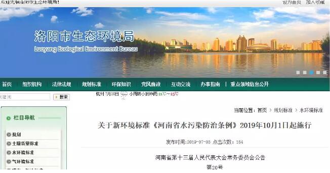 關于新環境標準《河南省水污染防治條例》2019年10月1日起施行 河南省第十三屆人民代表大會常務委員會公告 第20號