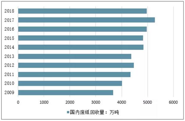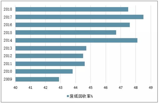 數據來源:公開資料整理 2009-2018年中國廢紙回收利用情況分析