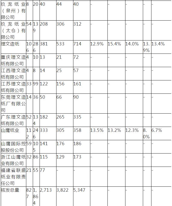 數據來源:公開資料整理 進口廢紙額度逐年減少