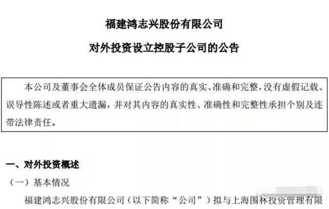 近日,新三板上市企業福建鴻志興股份有限公司發布公告稱,擬與上海圍林投資管理有限公司有限公司、儀征市慧聯半導體有限公司共同出資設立福建鴻志興科技芯片有限公司,注冊地為福建省建甌市,注冊資本擬為人民幣5500萬元。