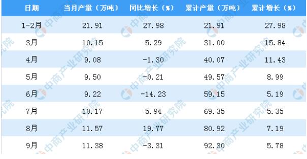據(jù)中商產(chǎn)業(yè)研究院數(shù)據(jù)庫顯示,2019年2-3季度遼寧省機制紙及紙板產(chǎn)量有所增長,2019年9月遼寧省機制紙及紙板產(chǎn)量為11.38萬噸,同比下降3.31%。2019年1-9月遼寧省機制紙及紙板產(chǎn)量為92.3萬噸,同比增長5.78%。
