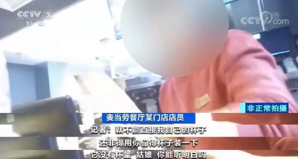 走訪中,記者發現,商家允許消費者使用自帶杯的寥寥無幾,即使允許也要用本店紙杯子裝好再倒入消費者杯子,紙杯子依然不能減少。 麥當勞餐廳某門店店員:如果每個人來了都跟我們這么說,我們這杯子都不用訂了,對吧?肯定到哪有哪的標準,我們有我們的標準。我們的售賣機制就是這樣的,就要使用我們的杯子。 在門店點餐商家會主動提供一次性杯子,那點外賣的情況如何呢?