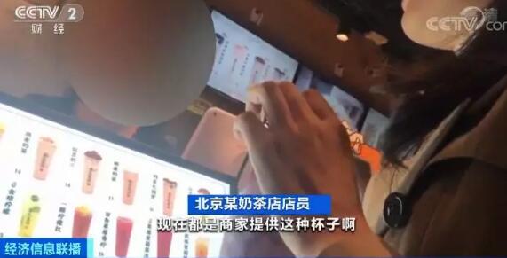 北京某奶茶店店員:現在都是商家在提供這種杯子。