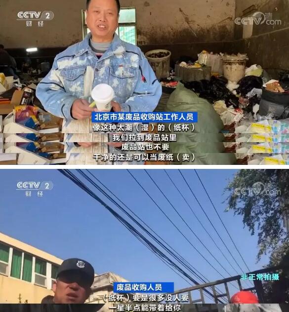 記者去了北京幾處廢品收購站,發現回收人員對不同紙杯子的回收態度也不同:濕紙杯,不回收;臟紙杯,不回收;干凈的干紙杯,有回收需求。
