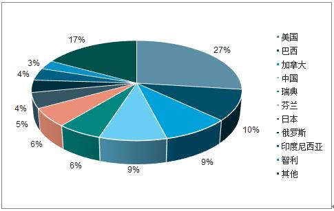 數據來源:公開資料整理 2019年以來終端機制紙需求疲弱,導致紙廠和貿易商均積極去化自身庫存,國內終端采購熱情趨淡,貿易商港口庫存持續走高,從而影響全球木漿產業鏈的需求端。 中國需求疲弱是本輪木漿下跌的主要動因,2019年1-4月份中國進口紙漿量同比減少6%,中國進口作為全球木漿供需結構中需求端最主要的增量支撐,在2018年8月以后以來開始走弱,一方面,木漿系紙產銷平穩增速降低,另一方面箱板瓦楞紙景氣度大幅下行,替代進口廢紙需求減弱。 二、供給端 漿產量最大的國家是美國,達到4876.5萬噸,占全球紙漿總產量的26.59%。排名前五位的其他國家有:巴西(1877.3萬噸,10.23%)、加拿大(1659萬噸,9.4%)、中國(1633.3萬噸,8.91%)和瑞典(1103.6萬噸,6.02%)。排名前十位的國家還有芬蘭、日本、俄羅斯、印度尼西亞、智利,上述十國占全球紙漿產量的比重合計為82.35%。 全球紙漿產量布局集中于少數國家