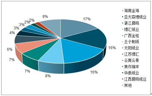 數據來源:公開資料整理 我國木漿產能分布集中,海南金海、亞太森博、湛江晨鳴三公司占據50%產能,產能前八的生產廠家占據82%產能;行業集中度較高,大企業多數自產自用,國內紙漿市場對海外進口依存度較高。由于木漿環保要求很高,而我國林地資源又相對貧乏,未來國內木漿產能大幅度擴張空間有限。 中國木漿產能集中于大企業