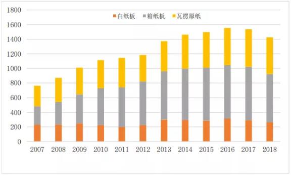 (廣東省造紙企業分布情況) 2018年,廣東省紙漿、紙及紙板產量超過10萬噸的造紙企業有46家,其中100萬噸以上的企業有5家,分別是玖龍、理文、晨鳴、建暉、亞太。這5家企業的原生紙漿總產量為87.8萬噸,紙及紙板總產量為1066.77萬噸,占廣東省紙及紙板總產量的50.93%;30萬噸-100萬噸的企業有24家,10萬噸-30萬噸的企業有17家。 2018年全國產量前30名的重點造紙企業中,公司或子公司在廣東省的企業共9家,其中玖龍紙業(控股)有限公司產量仍居全國第1位,產量達1394萬噸,同比增長6.17%;理文造紙有限公司產量為563.17萬噸,同比增長1.48%,居第二位。 山東晨鳴紙業集團股份有限公司居第5位;華泰集團有限公司居第6位;中國紙業投資有限公司居第7位;亞太森博中國控股有限公司居第13位;東莞建暉紙業居14位;維達國際控股有限公司居第18位;東莞金洲紙業有限公司居23位。 部分包裝紙企幾乎無利潤或虧損運營 2018年全國包裝紙產銷量同比2017年均有大幅下降,其中,箱紙板產量為2145萬噸,同比下降10.06%,消費量2345萬噸,同比下降6.57%;瓦楞原紙產量2105萬噸,同比下降9.85%,消費量2213萬噸,同比下降7.64%;白紙板產量1335萬噸,同比下降6.64%,消費量1219萬噸,同比下降6.16%。