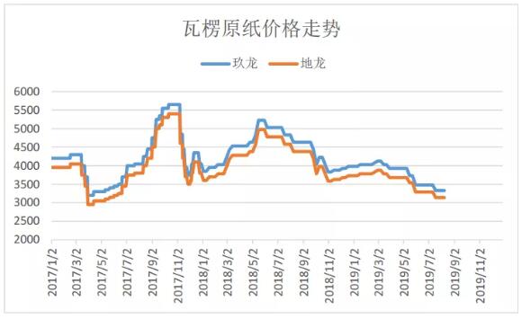 (全國包裝紙產銷量) 近兩年,受廢紙原料價格波動及環保等因素的影響,包裝紙價格大幅波動。 2017年,包裝紙價格大幅上漲,箱紙板價格從3800元/噸上漲至最高6800元/噸,瓦楞原紙價格從3000元/噸上漲至5700元/噸。 但2018年以來,包裝紙價格則開始下降,目前箱板紙價格已基本回落到4000元/噸左右,瓦楞原紙價格回落到3200元/噸左右。