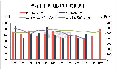 中國(guó)和歐洲是巴西紙漿出口主要目的地區(qū),2018年發(fā)往中國(guó)的出口量占總出口量的42%,歐洲地區(qū)占總出口量的32%,圖2可以看出兩大地區(qū)的紙漿庫(kù)存高位并沒(méi)有降低巴西紙漿出口量。巴西海關(guān)公布數(shù)據(jù)顯示,7-10月巴西紙漿出口量455萬(wàn)噸,與去年同期基本持平,其中到中國(guó)的紙漿出口量195萬(wàn)噸,較去年同期上升15%。可以看出到中國(guó)的出口量呈現(xiàn)增長(zhǎng)趨勢(shì),主要原因:一是中國(guó)紙漿市場(chǎng)景氣度好于歐洲市場(chǎng);二是中國(guó)紙漿下游市場(chǎng)體量較大,紙漿消耗能力好于全球其他地區(qū)。卓創(chuàng)分析,基于這兩個(gè)原因,未來(lái)中國(guó)將穩(wěn)固巴西紙漿第一大出口目的地地位。 降漿價(jià) 出口均價(jià)不斷下調(diào) 穩(wěn)出口伴隨的第三個(gè)操作就是降漿價(jià),從圖2可以看出2018年7月開(kāi)始,巴西紙漿出口均價(jià)下降明顯,2019年10月降至392美元/噸,環(huán)比下降12%,同比下降28%。主要原因:一是下游采買(mǎi)熱情不高,漿廠去庫(kù)存壓力大,低價(jià)銷(xiāo)貨,集中部分貨物采取低價(jià)預(yù)售或到貨談價(jià)的情況;二是巴西紙漿生產(chǎn)成本較低,漿廠有利潤(rùn)空間支撐漿價(jià)下調(diào),三季度巴西各漿廠財(cái)報(bào)顯示紙漿行業(yè)盈利能力仍然強(qiáng)勁。 后期展望 供應(yīng):12月CENIBRA漿廠兩條線持有檢修計(jì)劃,共檢修12天。Suzano旗下漿廠前三季度共生產(chǎn)紙漿650萬(wàn)噸,預(yù)計(jì)四季度產(chǎn)量250萬(wàn)噸左右,最新的11月巴西紙漿出口量122萬(wàn)噸,環(huán)比下降7%,同比上升4%,巴西紙漿供應(yīng)量穩(wěn)定。 庫(kù)存情況:四季度中國(guó)和歐洲紙漿港口庫(kù)存均呈下降趨勢(shì),但因?yàn)榍捌趲?kù)存處歷史高位,截至11月底庫(kù)存壓力仍存,暫不具備支撐漿價(jià)上漲條件。 需求情況:中國(guó)中大型紙廠直接采買(mǎi)外盤(pán),消化一部分紙漿庫(kù)存。但隨著文化用紙傳統(tǒng)旺季結(jié)束、生活用紙市場(chǎng)持續(xù)低迷,漿市需求后勁趨弱,短期需求量難有明顯增量。 卓創(chuàng)分析,年末中國(guó)紙漿市場(chǎng)仍處供大于需階段,巴西紙漿供應(yīng)量穩(wěn)定,紙漿下游行業(yè)景氣度一般,部分中小紙廠春節(jié)停機(jī)時(shí)間或增加,紙漿消耗速度趨緩,預(yù)計(jì)巴西漿廠2020年上半年仍將采取主動(dòng)降產(chǎn)量操作,漿價(jià)維持低位震蕩。