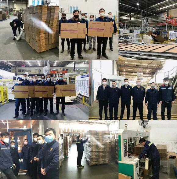 關(guān)鍵時期,為保障員工生命安全,強(qiáng)化員工安全防護(hù),確保生產(chǎn)正常運行,公司把員工的生命安全和身體健康放在第一位,每個員工進(jìn)入廠區(qū)需要佩戴口罩,測量體溫,所有入廠人員實名登記。 公司還特意為員工準(zhǔn)備了專用洗手液、酒精等防護(hù)物品,在各個辦公區(qū)域、生產(chǎn)區(qū)域、食堂、班車以及送貨車輛等都定時定點消毒,每天3次。 員工餐廳充分利用我司紙箱等包裝材料優(yōu)勢,資源整合,優(yōu)化配置,單人單格分離就餐,定時消毒,干凈整潔。 并實行員工分散、錯時就餐制度,對餐具實行嚴(yán)格的消毒措施,盡最大可能切斷病毒傳播途徑。 另外,集團(tuán)總部也從員工健康方面出發(fā),在疫情蔓延之時,與時間賽跑,同肺炎抗?fàn)帯S?020年1月26號緊急上線聯(lián)合包裝網(wǎng)APP和BI兩個防疫打卡系統(tǒng),同時記錄全體員工體征,每天統(tǒng)計員工個人狀況,及時了解每個員工有無發(fā)熱、咳嗽、乏力癥狀;嚴(yán)格把關(guān)是否有跟湖北或武漢有接觸;每天對回蘇狀況進(jìn)行上報并統(tǒng)計;同時集團(tuán)上線兩個系統(tǒng),監(jiān)測每個員工的個人狀況,員工需每天在系統(tǒng)申報目前位置、個人情況。 捷報一 : 新年第一單圓滿交貨 在各部門緊密配合和所有到廠員工的共同努力下,新年第一單圓滿交貨。 正月初五:努力、收獲、感動...... 捷報二:大年初五,收到客戶的感謝信 客戶的滿意,我們的追求,這將更是我們勇往直前的動力!疫情當(dāng)前,我們、萬國人,義不容辭。 捷報三:10000支口罩到貨 在防護(hù)物資,消毒物資緊缺的情況下,公司充分發(fā)揮了集團(tuán)優(yōu)勢,在泰國工廠同事的幫忙下,緊急從泰國工廠、越南辦事處采購一批醫(yī)用口罩寄往國內(nèi) 劉總也動用所有社會資源,緊急籌集到了一批防疫物資。于1.30日口罩到貨10000個、消毒水到貨40L、消毒凝膠到貨45L、消毒粉到貨12kg,確保了工廠生產(chǎn)期間所需的防疫物資儲備。 捷報四:原紙采購順利到貨 功夫不負(fù)有心人,疫情防控關(guān)鍵階段,全國交通受限。在采購部門的再三努力協(xié)調(diào)下,生產(chǎn)所需的原材料全程高速、第一時間順利到貨,簡直是一場及時雨呢! 抗“疫”路上 不分性別,不分年齡 我們不會救死扶傷 我們只能在自己熟悉的而又平凡的崗位 為防疫工作做好后勤保障 國家有難,匹夫有責(zé) 勇戰(zhàn)疫情,為愛馳騁 蘇州萬國,義不容辭 疫情防控,蘇州萬國紙業(yè)包裝有限公司 全力以赴、眾志成城 時刻用實際行動詮釋著企業(yè)的責(zé)任和擔(dān)當(dāng) 武漢加油,中國加油