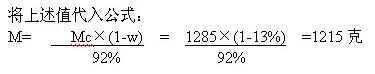 舉例: 從一批紙箱出抽出三個試樣,測得的箱重平均值為1285克,測得水份平均值為13%,試推算其經溫濕平衡處理后的箱重值。