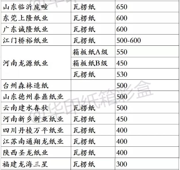 3、龍頭紙廠玖龍、理文的包裝紙參考報價