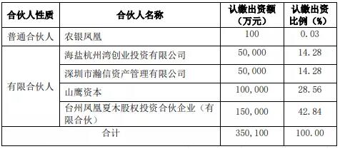 產(chǎn)業(yè)并購基金完成了工商登記注冊并取得了營業(yè)執(zhí)照 2020年2月18日,山鷹國際控股股份公司第七屆董事會第三十四次會議審議通過了《關于全資子公司參與發(fā)起設立產(chǎn)業(yè)并購基金的議案》,同意全資子公司山鷹投資管理有限公司(以下簡稱“山鷹資本”)認繳出資人民幣25億元,與浙江農(nóng)銀鳳凰投資管理有限公司(以下簡稱“農(nóng)銀鳳凰”)共同發(fā)起設立浙江農(nóng)銀鳳凰綠色環(huán)保漿紙并購合伙企業(yè)(有限合伙)(暫定名,以工商部門最終核準的名稱為準,以下簡稱“產(chǎn)業(yè)并購基金”)。 因產(chǎn)業(yè)并購基金引入有限合伙人,山鷹資本、農(nóng)銀鳳凰與其他有限合伙人正式簽署了《嘉興英凰股權投資合伙企業(yè)(有限合伙)之合伙協(xié)議》。經(jīng)各投資方一致同意,產(chǎn)業(yè)并購基金首期認購規(guī)模為人民幣35億元,山鷹資本首期認繳出資人民幣10億元。 近日,產(chǎn)業(yè)并購基金完成了工商登記注冊并取得了營業(yè)執(zhí)照,具體工商登記信息如下: 公司名稱:嘉興英凰股權投資合伙企業(yè)(有限合伙)類型:有限合伙企業(yè) 執(zhí)行事務合伙人:浙江農(nóng)銀鳳凰投資管理有限公司(委派代表:俞志剛)成立日期:2020 年 3 月 19 日 主要經(jīng)營場所:浙江省嘉興市海鹽縣西塘橋街道(海鹽經(jīng)濟開發(fā)區(qū))海港大道 1817 號 1408-8 室。 經(jīng)營范圍: 一般項目:股權投資;信息咨詢服務(不含許可類信息咨詢服務)(除依法須經(jīng)批準的項目外,憑營業(yè)執(zhí)照依法自主開展經(jīng)營活動)。 基金規(guī)模:總規(guī)模不超過 80 億元,首期規(guī)模350,100 萬元。 存續(xù)期:5 年(3 年投資期+2 年退出期),經(jīng)全體合伙人一致同意可延長2 年。經(jīng)執(zhí)行事務合伙人同意,可縮短其合伙期限。 投資人及投資比例: