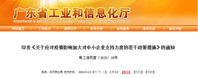 3月23日,廣東省工業和信息化廳、廣東省地方金融監管局等9部門聯合印發了《關于應對疫情影響加大對中小企業支持力度的若干政策措施》的通知。