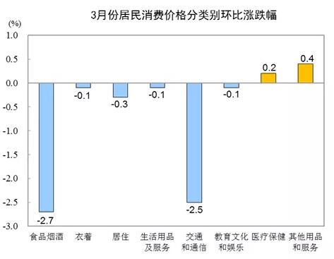 各類商品及服務(wù)價(jià)格環(huán)比變動(dòng)情況 3月份,食品煙酒類價(jià)格環(huán)比下降2.7%,影響CPI下降約0.90個(gè)百分點(diǎn)。 食品中,鮮菜價(jià)格下降12.2%,影響CPI下降約0.39個(gè)百分點(diǎn);畜肉類價(jià)格下降5.2%,影響CPI下降約0.41個(gè)百分點(diǎn),其中豬肉價(jià)格下降6.9%,影響CPI下降約0.36個(gè)百分點(diǎn);蛋類價(jià)格下降4.3%,影響CPI下降約0.02個(gè)百分點(diǎn);水產(chǎn)品價(jià)格下降3.5%,影響CPI下降約0.07個(gè)百分點(diǎn)。 其他七大類價(jià)格環(huán)比兩漲五降。其中,其他用品和服務(wù)、醫(yī)療保健價(jià)格分別上漲0.4%和0.2%;交通和通信、居住價(jià)格分別下降2.5%和0.3%,衣著、生活用品及服務(wù)、教育文化和娛樂價(jià)格均下降0.1%。